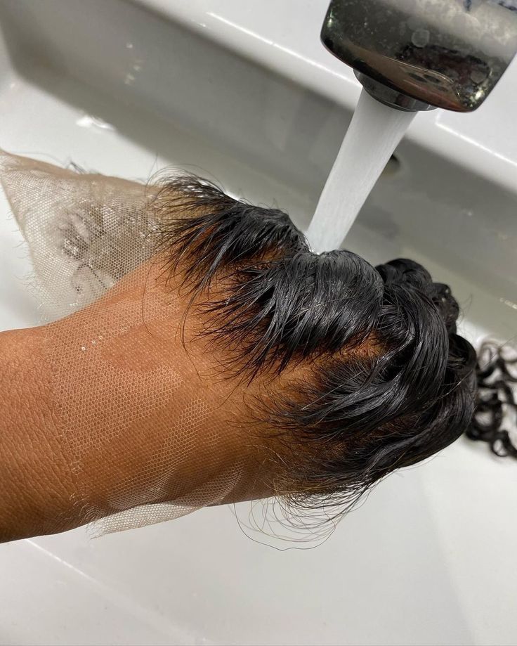 ❯ Encha uma bacia com água fria ou morna (nunca quente, pois pode danificar o cabelo e a base da lace).